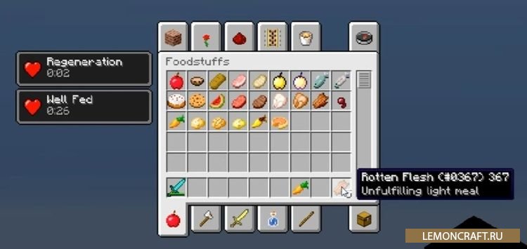 Мод Hunger Overhaul можно отнести к вещам, глобально влияющим на ход игры. Этот мод изменит уровни голода во время редспауна, изменит суть восстановления здоровья. Так же изменится скорость изнашивания инструментов, скорость роста животных, растений и множества других элементов игры.