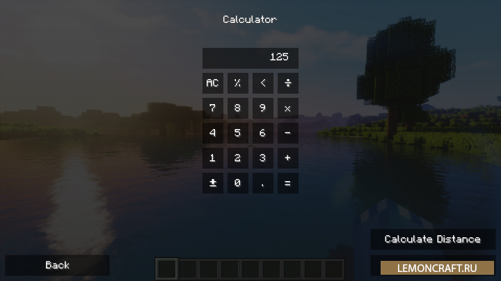 Мод Calculations добавит в игру простой калькулятор имеющий полезные функции для игры майнкрафт. С его помощь вы сможете выполнять основные арифметические действия, высчитывать расстояние до нужной точки по координатам, конвертировать координаты с Нижнего мира.