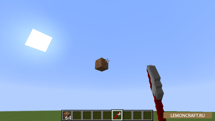 Мод Dirt Flinger добавит в игру новое оружие - пращу. С ее помощью вы сможете бросать в мобов блоки земли. Если вы попали в моба он получить 6 единиц урона. Если промазали блок земли установится. Старайтесь использовать это оружие с умом, а то захламите всю территорию блоками с землей.