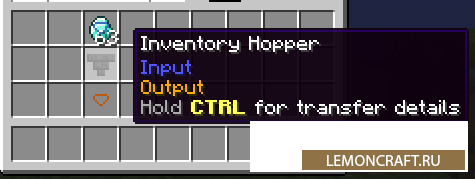 Мод FactInventory добавляет в игру два новых предмета, которые будут работать прямо в инвентаре. Первое устройство автоматизирует перемещение предметов в вашем инвентаре. Данное устройство имеет два уровня работы - быстрый и медленный. При быстрой работе предметы перемещаются каждую 1 секунду, при медленной - каждые 8 секунд. Вторым устройством является печь, которая позволяет плавить предметы прямо в инвентаре.